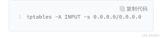 - 指源 IP 地址部分, - 指目标地址部分, DROP 指放弃, 即: 你拒绝访问我的系统, 无论你来自何处, 你不能黑进任何人。