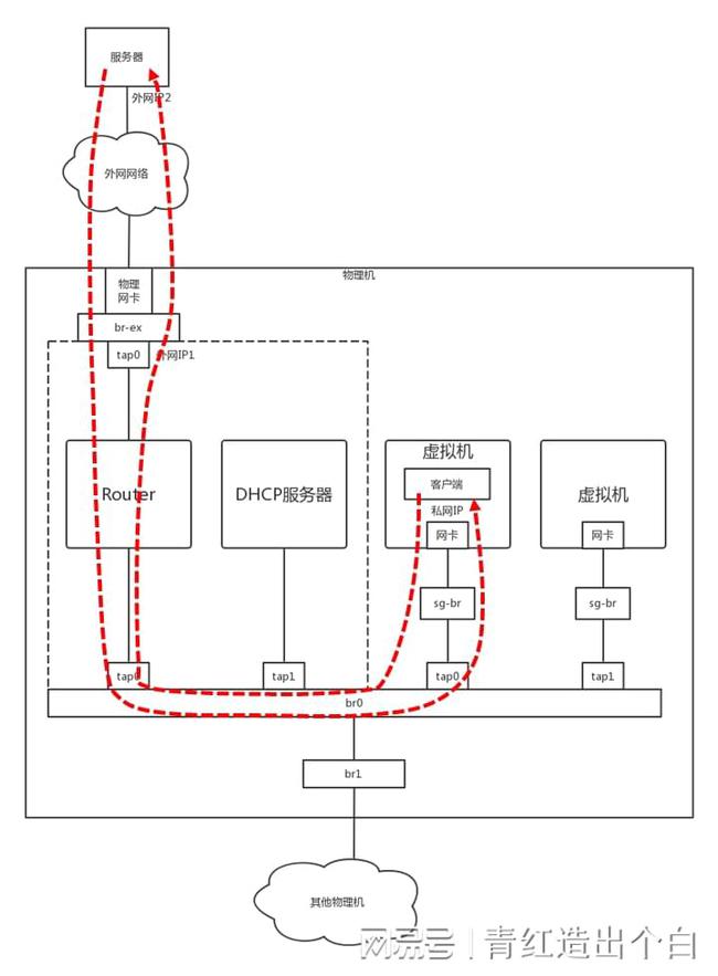云层平台内的虚拟机器也是如此,它只有一个私人IP地址,只到外部网络一次,进行Snat,将其转换成网络IP,然后从数据中心转换成公共网络IP。