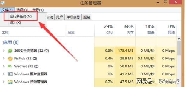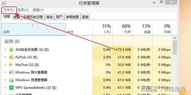 2. 任务管理窗口随后出现,用户点击 " 文件 " 。