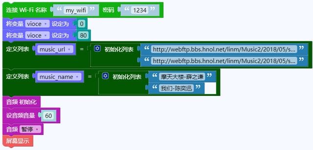 然后将音频工具包添加到控制面板扩展名中, 以使以下操作更容易。 它增加了四个新的变量 : 歌曲播放的变量 i, 当前歌曲名称的变量 软体- name, 网络地址的变量 music- url, 音量的变量 。