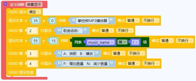 为了能够在控制面板屏幕上显示所需的信息, 我为函数“ 屏幕显示” 开发了一个功能模块, 该模块显示屏幕上播放的歌曲的名称, 并为 MP3 播放器、 A: Toggle Song B: Play song P: 提高音量 N: 减少音量 提供了一个功能关键注释 。