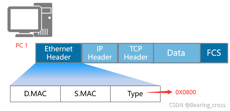 类型字段显示数据框中包含的数据使用哪些 IP 级别协议。 例如, Type= 0X0800 表示数据是一个 IPv4 数据包 。