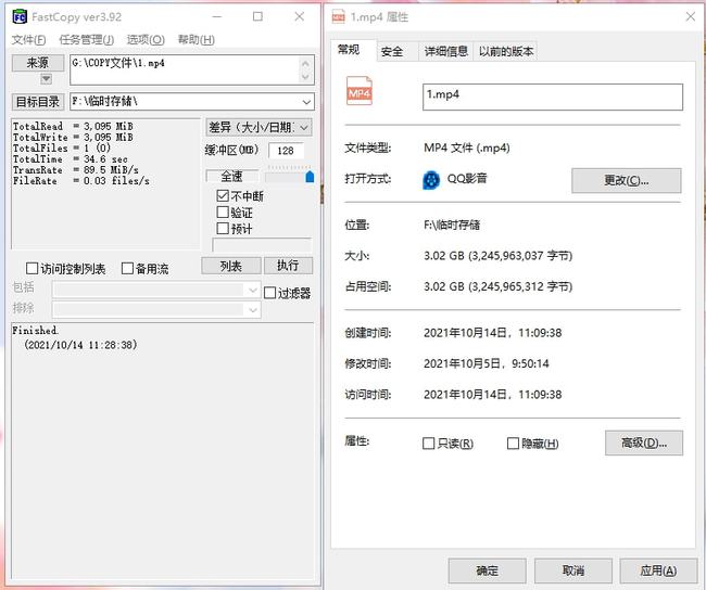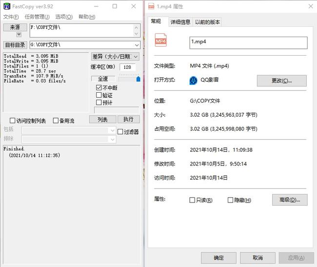 FastCopy程序(我相信每个人都熟悉这个程序)是Windows平台上最快速的复制软件, 我是计算机上的第一个人。 大小为 02 GB 的电影被复制到内存 su10 中, 总共需要28.7 秒。 传输速率是 107.9MB/ S, 3 GB 文件只需28.7 秒即可传输。 这是一些有用的信息 。