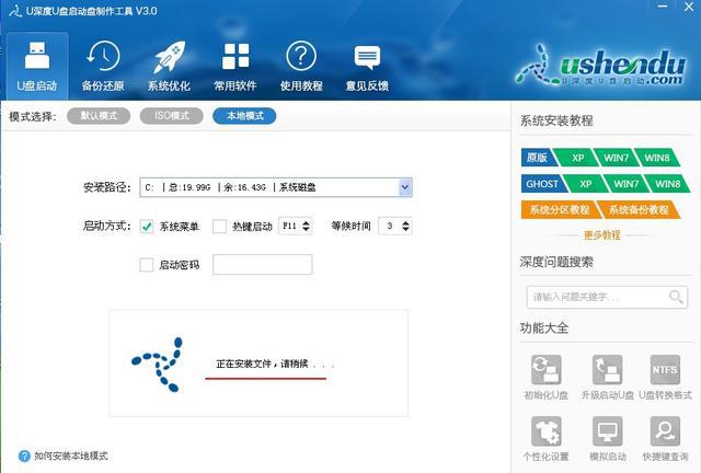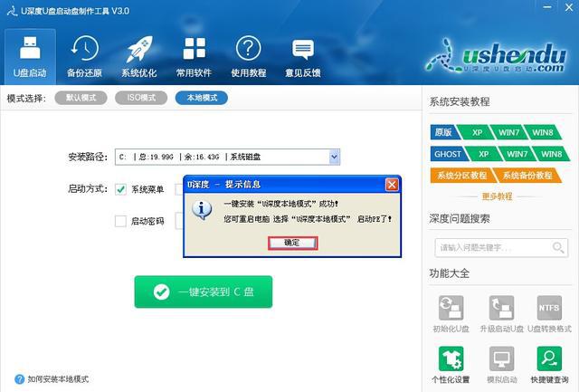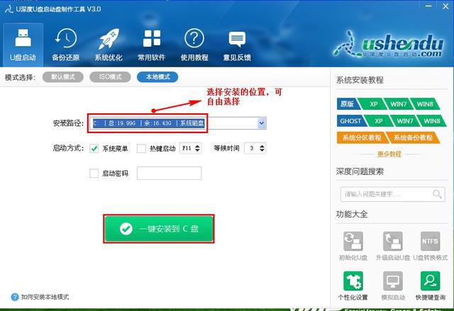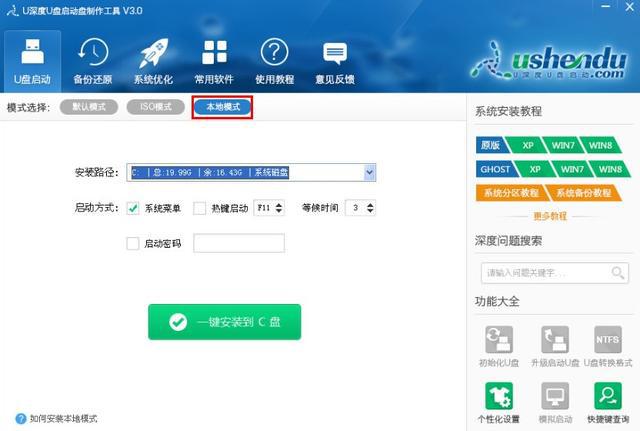 1. 打开U-Deep u Disk 启动器,并如图像所示,从显示的接口中选择本地模式:
