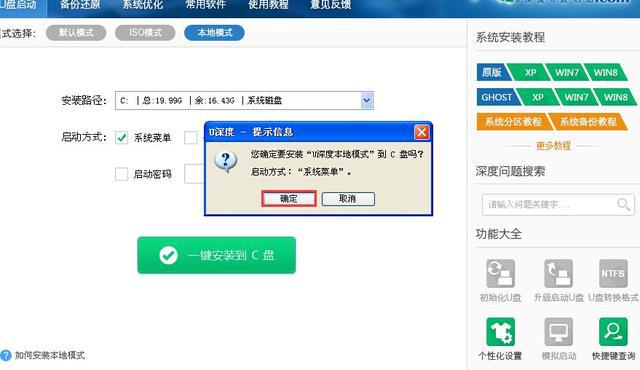 一个成功的安装窗口将来自一个4-U深度本地模式安装,它大约需要20-30秒。当我们单击确认按钮时,机器将被检查,而一个 u 深度本地模式选项将显示在启动菜单中,如图所示: