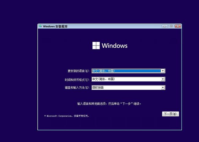 在用已安装的媒体启动计算机后,以下显示的界面将显示显示,您必须单击下一页才能继续。