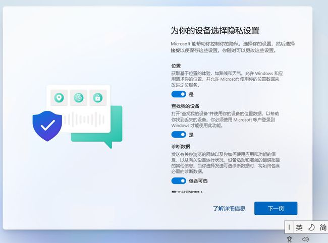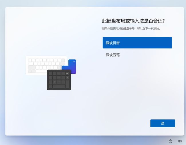 在完成选择后,为 Windows 11 选择键盘布局和输入方法,并单击 [是] 开始安装。