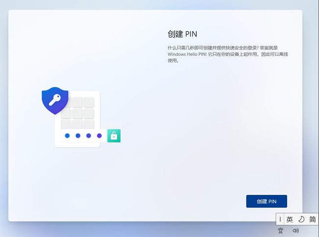 当上述账户号码和密码得到确认后,Windows 11操作系统将获得一个登陆 PIN 代码,即Windows登录密码,可以在Windows下线使用。单击 [Create PIN]开始安装。