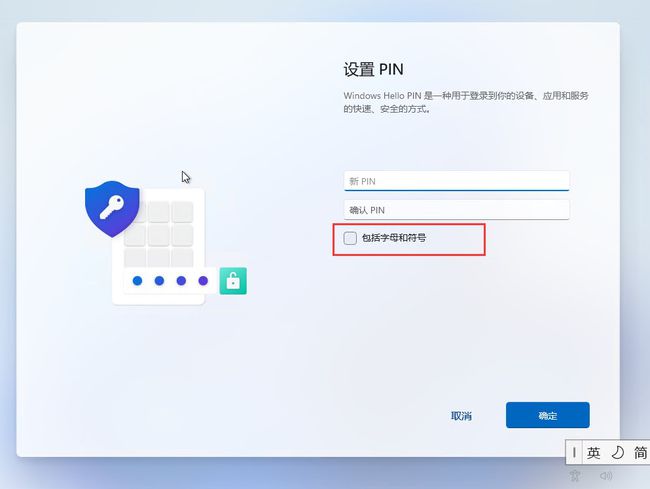 输入 PIN, Windows 密码。如果密码必须包含字母和字符,请检查 [含有字母和符号] 的框并在完成后单击 [确定] 。