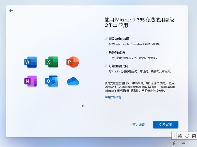 如此处所示,Windows 11是安装办公室365的免费试验,如果经验没有安装,可以点击该试验。 [否,谢谢]。