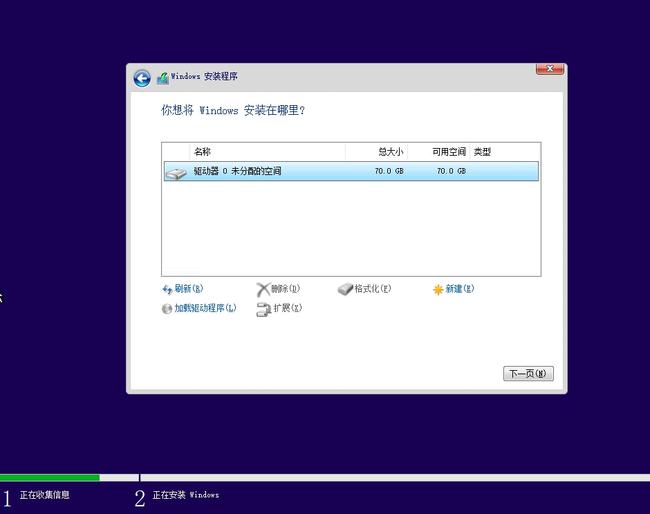 选择您要安装的磁盘, 然后单击 [下页] 继续安装 。