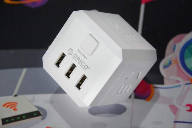 这是一个电立方体转换插件,配有立体立方体设计,除脚插件外,所有侧面都有电源。 其中4个有5个孔,1个有3个USB接口。 在使用过程中,每个电源接入不会相互干扰,无论是通过插上计算机主机、显示屏幕电源或充电移动电话或其他设备。