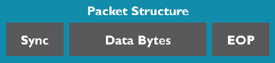 每个数据包都按照当前传输速度传输整数字节。该包以同步模式开始,然后是数据字节,最后是 EOP 信号。