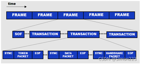 特殊数据包是框架启动数据包(SOF),该数据包将USB总线拆分为不同时间。每个管道在每个框中分配一个空位。Frame启动数据包在全速链上每1米发送一次。At high high, 1ms框架被破解为8微米,每框架125 ms。框架号每1 ms。