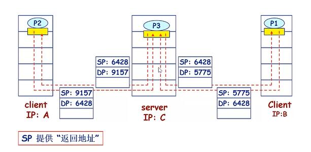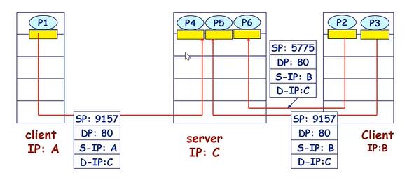 (4) IP数据集从不同的IP地址或源端口号发送到同一插座。