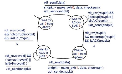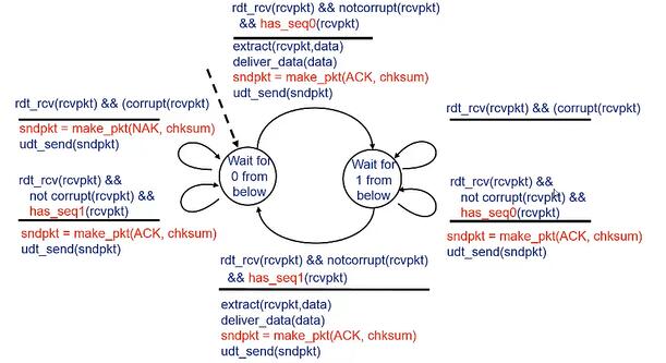(2) NAK:接收器在发送方的分组中显示有组错。