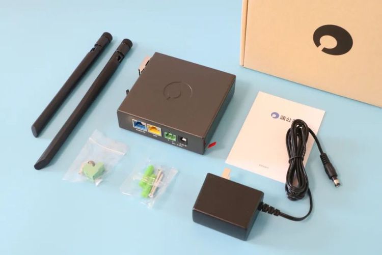 青铜R300A路由器包装在两层牛纸箱中,目前被视为第二层包装,包装上非常清晰,布朗克斯面有一个标志,包装上最明显的光线应该是侧面的工业路由器。