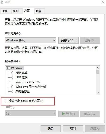3. 打开音响设置框,下面有一个“播放窗口启动声音”选项,可以打开和关闭 Win10 。