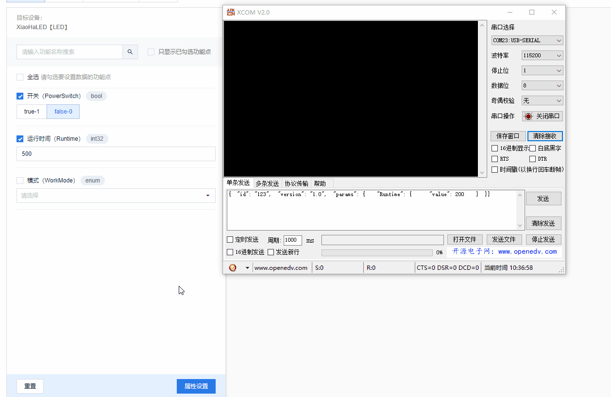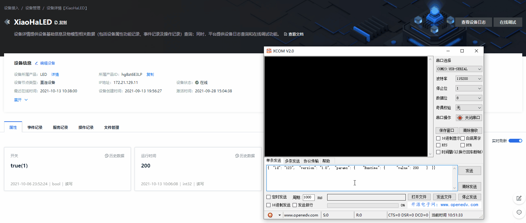 我们在控制台中的运维监控–>设备调试–>应用模拟器中改变目标设备XiaoHaLED【LED】本单元的系列印刷品产出如下: