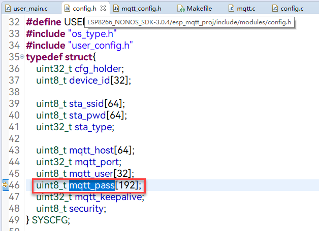 因为 MQTT_ PASS 2 中的内容很长, 相关数组的长度必须手动修改 :