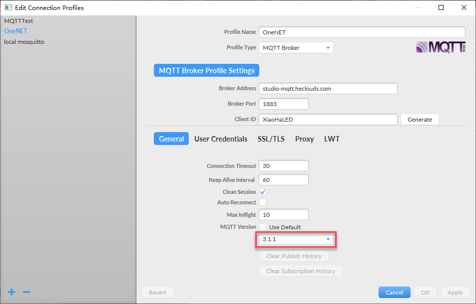 地图 3 位置, 使用协议版本, 使用 MQTT 。 Fx 软件设置在两个版本都相同 。