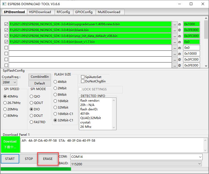 创建固态,然后通过ESP8266 DoWNOAD TOOL 软件翻译以更新固态: