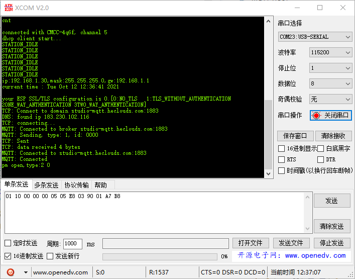 固态被下载,模块被重新启动,并获得以下序列端口输出: