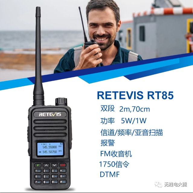 Retevis RT85是一个低成本的双向业余无线电台,对初创者来说是理想的。 它是一个5W甚高频和超高频手持模拟器,具有以下典型功能: