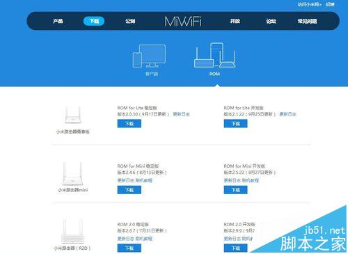 2. 当然,如果磨坊出现重大故障,只能通过U-driller加以纠正,在这方面,Miroute(Miwifi)的官方网站已经到达。 视毫米路由器模式而定,从 " 下载 " - " Rom " 标签界面中选择要下载的ROM软件包。