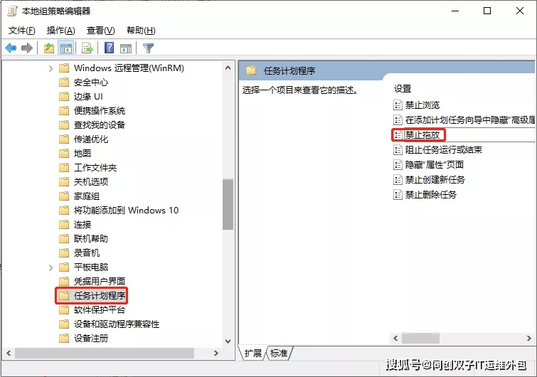 开始组战略,按以下顺序修改窗口: [计算机配置] - [管理模板] - [窗口组件] - [任务计划程],并在正确的窗口中发现和编辑[禁用拖 。