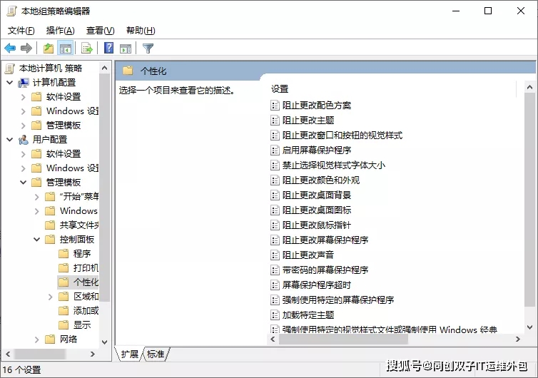 按以下顺序扩大组合战略编辑窗口:[用户配置]-[管理模板]-[控制面板]-[个性化],然后双击右窗口[以避免对桌面背景的改动]。
