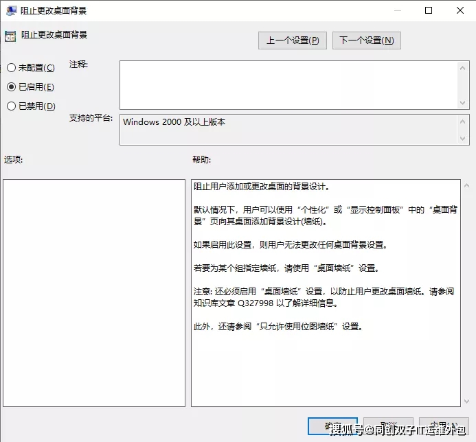 在弹出式 [阻止桌面背景变化] 设置对话框中选择 [启用],然后单击确认。