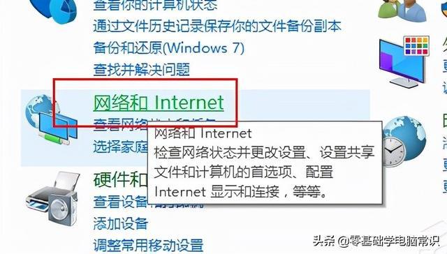2. 然后将出现控制面板窗口,您可以在其中选择[网络和互联网]。