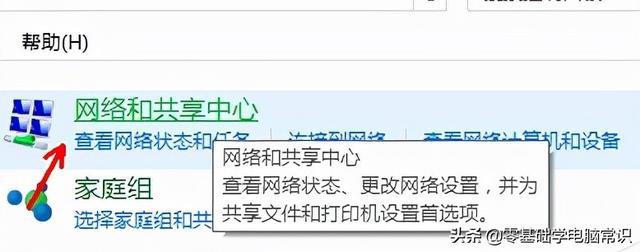 3. 如图所示,转到新窗口页面并点击[网络和共享中心]: