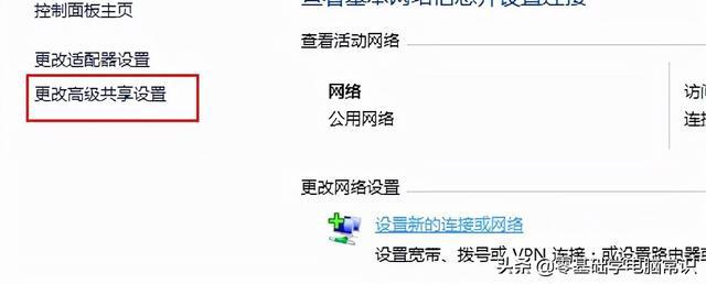 4. 查找[改变高级共享选项]并从窗口左侧的列表位置中选择。