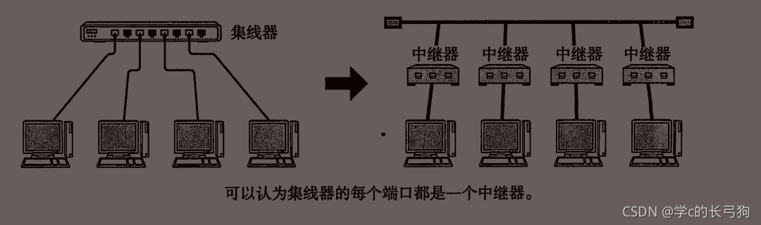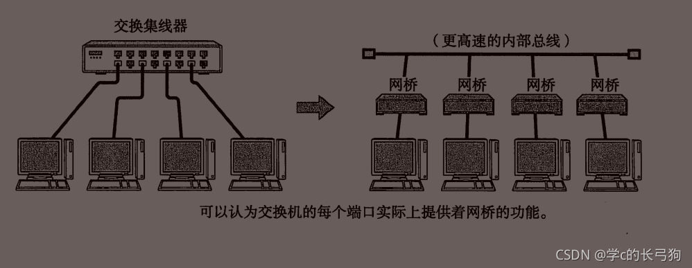 以太网中使用的交换集线器现在它实际上也是一个网络桥梁,每个港口都与交换中心电缆连接,进行类似桥梁的业务。