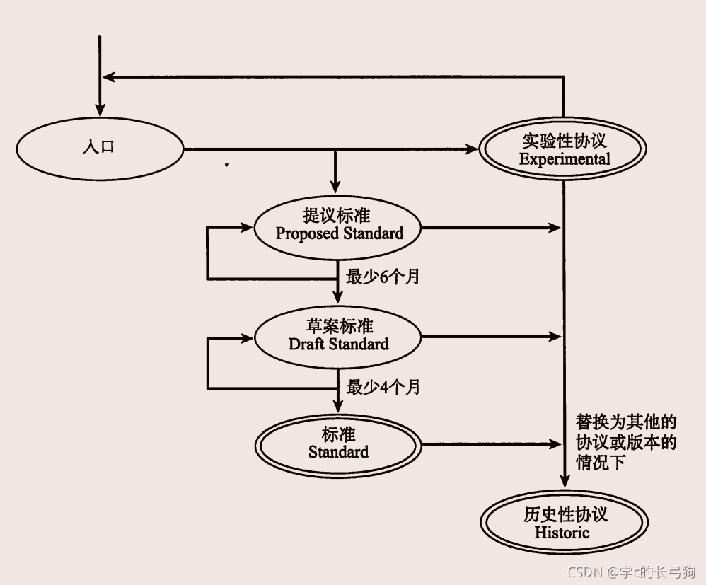 流程分为因特网阶段草案、拟议标准阶段、标准阶段草案和四个标准阶段