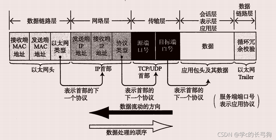 每个包页头至少有两条信息:一条包含发件人和接收端端地址,另一条包含前一级协议。
