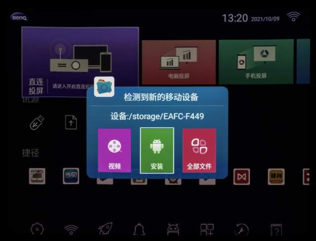 Mingji E520智能商业投影器除了支持无线投影器外,还运行简易高效互动的智能系统。当您插入闪存盘时,操作栏会立即打开,询问您是否想要打开存储在驱动器中的文件。没有考虑格式化,而格式化是可以容纳的。