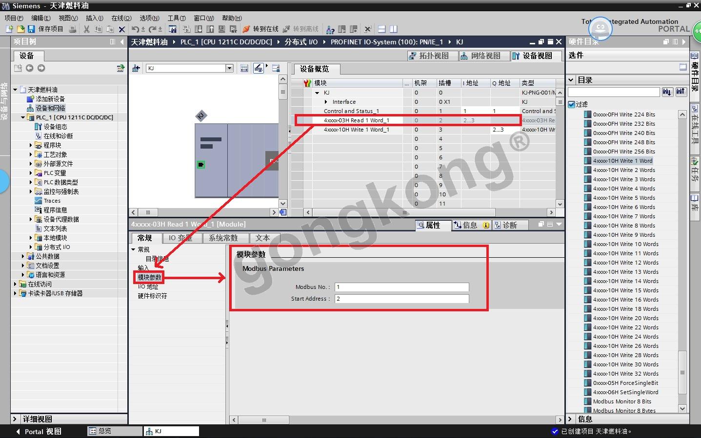 (8) 硬件分组 -- -- 如图3至图9所示,将Modbus的IP地址和名称改为PropiNet网关KJ-PNG-001组(IP地址将与真实的PLC地址共享,名称与KJ-PNG-001相符)。