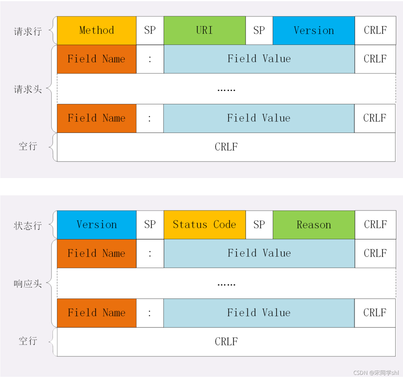 状况线比请求线短,分三部分: