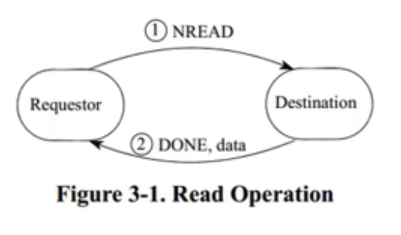 图3.1描绘了基本操作过程,其中,提出请求的端端提交对NREAD服务的请求,获得目标端点的内存区域的内容,将请求嵌入请求的响应功能,并返回到请求端。 NREDAD服务以2级包完成,图2.5描述了第二个包的结构。未阴影部分是一个逻辑层字段。