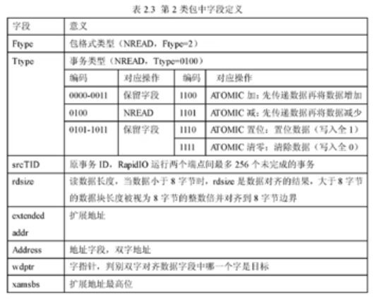 RIO 运行于系统的可见地址空间, 支持三个地址模型: 小地址模式、 中地址模式和大地址模式。 小地址模式由数据的位置、 大小和对齐支持, 与地址、 wdptr 和 xamsbs 变量一起使用。 中地址模式和大地址模式为中地址模式扩展分别增加一个有16个地址和32个地址的扩展地址。 缓存端点将根据从 NREAD 请求包中收到的地址信息找到本地存储器, 然后将存储的数据嵌入响应软件包, 发送到请求中, 请求结束对响应软件进行解锁, 并获取所需的数据 。