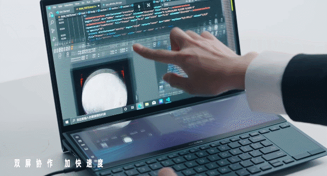 主屏幕使用14英寸1920*1080的全高触摸屏,旨在将ErgoLift链条上的ScreenPad+子屏幕提升至7°,新上市的双屏Pro高达9°.5°,更舒适和强化的散热器功能。 在全新的屏幕控制软件ScreenXpert下,将多个屏幕扩展和共用位置等外地应用程序整合到一台膝上型计算机中,用手打开屏幕为您打开一个全新的世界,每次创造都充满惊喜、亮度、效率、许多应用,设计者、工程师和研究人员在更多领域都有共同的选择。