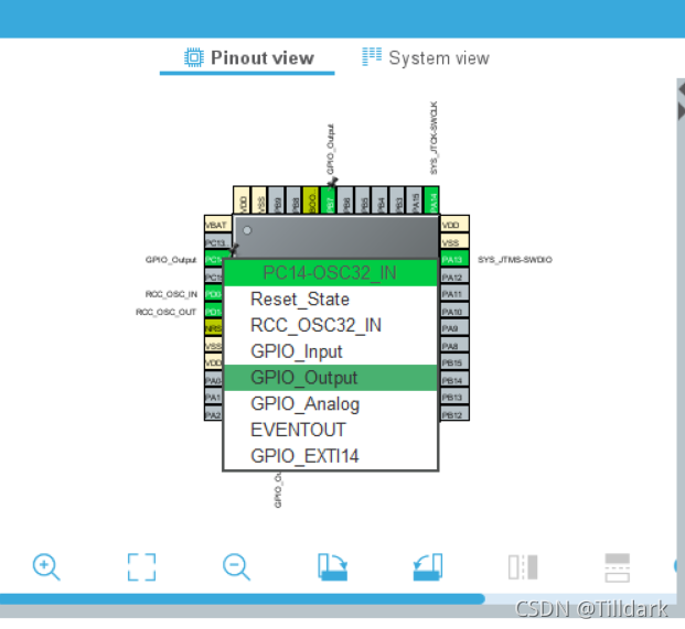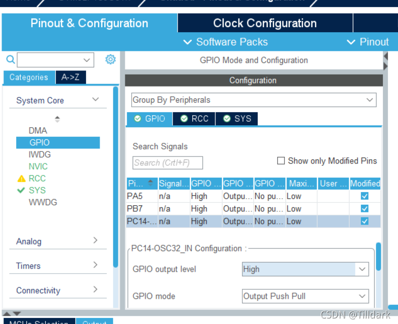 接下来您需要选择正确的下调设置输出注册。 点击尚未被剪切的 。 选择 3 。 PA5, PB7 和 PC14