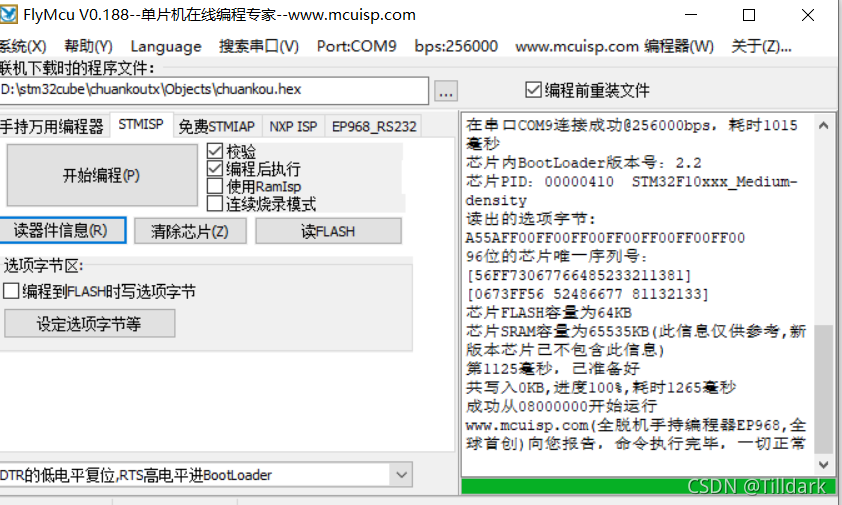将创建的十六进制文件刻录在芯片上,