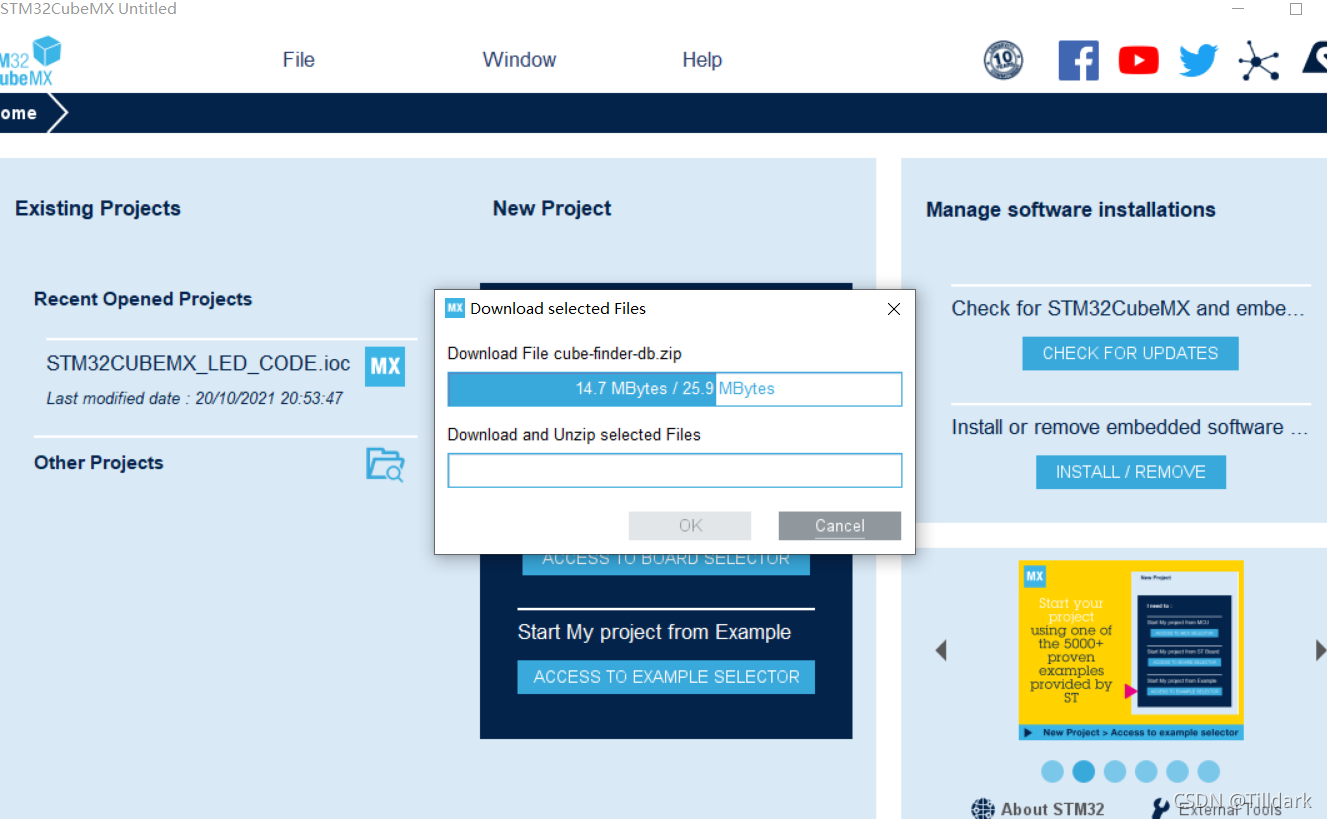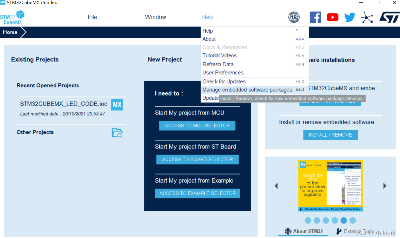 STM32cubeMX 下载完成后, 请单击帮助下载辅助软件包 。