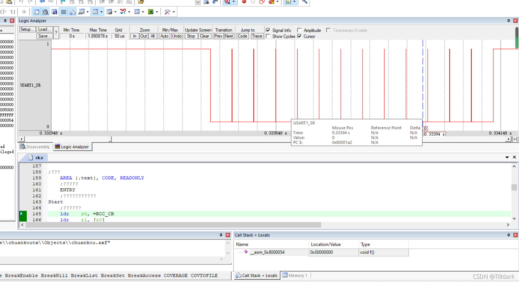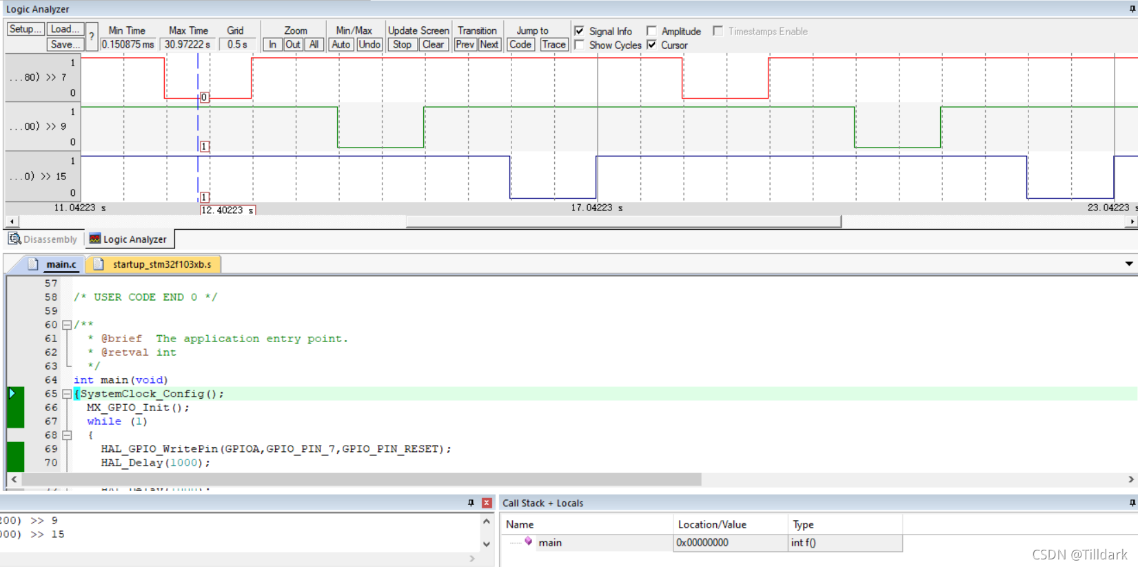 七. Keil 软件模拟逻辑分析器功能用于观测管脚的时间序列波模式