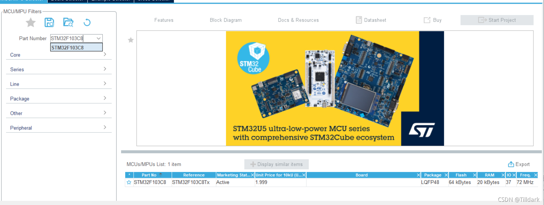 在部件名称字段中键入芯片的名称,然后单击创建项目。