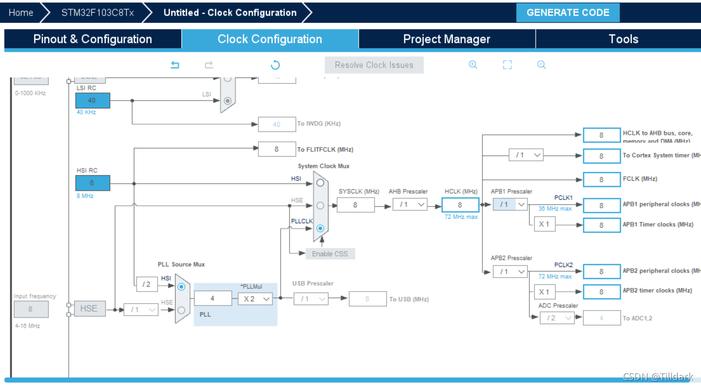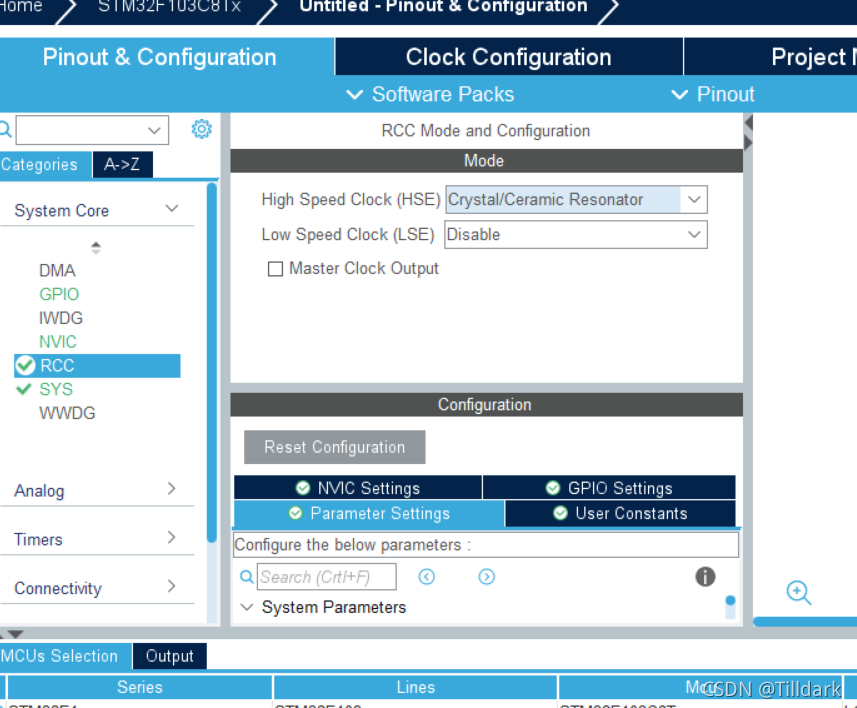 之后,您通过点击 rcc, 时钟配置, 和球圈来自定义时钟 。